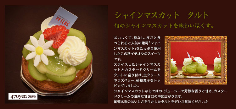 人気のシャインマスカットをたっぷり使ったスイーツです。ぜひご賞味ください。